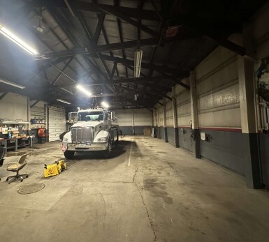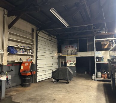Automotive shop for lease with 2 overhead doors, floor drains and great visibility.
