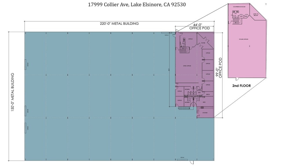 17999 Collier Avenue in Lake Elsinore, California, presents an exceptional opportunity to acquire a well-positioned industrial property in a thriving Inland Empire submarket. Situated on approximately 2.93 acres, this ±35,975-square-foot facility offers a highly functional layout with ±29,625 square feet of warehouse space and ±4,000 square feet of office area. The building is fully insulated and equipped with a comprehensive sprinkler system, ensuring safety and operational efficiency. Key features include four grade-level doors, one dock-high door, and a 3-ton overhead crane, making it ideal for a wide range of industrial uses.
