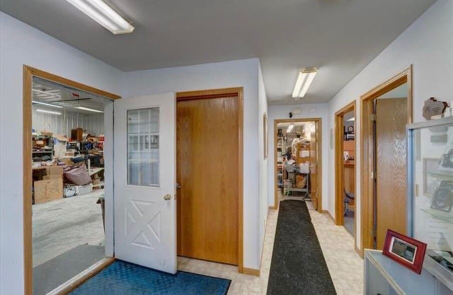 Discover your new business headquarters! This versatile commercial property offers two private offices, a workshop/service room, and four spacious bays with 12’ ceiling height and 10' garage doors.. Built to perfection, the structure features a 4’ frost wall, 6” insulation, and durable 2x6 construction. The poured concrete bays are divided into two heated and two unheated stalls, providing flexibility for a variety of uses. Additional highlights include an ADA-compliant bathroom, security alarm system, 3 phase power to lot line, and 1 acre of land with additional buildable space behind the main building( see documents). Main building built 1995 additional building 1997. A rare opportunity to grow and customize your business in a thoughtfully designed space.