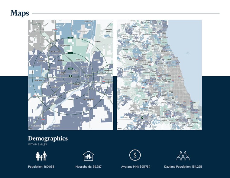 + Nouveau réaménagement - Joignez-vous au marché frais de Tony - Joignez-vous à Planet Fitness - Petite boutique disponible + Densité de population - 166 000 personnes dans un rayon de 5 milles + Nombre élevé de trafic - 30 100 VPD sur la rue Jefferson - 28 700 VPD sur l'avenue Larkin + Générateurs de trafic - Adjacent à l'école secondaire West Joliet - Près de Walmart, Menards, Sam's Club, Jewel Osco, Walgreens et plus + Accessible à l'échelle régionale - Échangeur complet I-80 dans un rayon de 3/4 milles