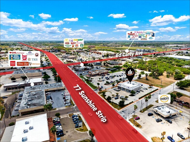- Strategically located on S. 77 Sunshine Strip, one of Harlingen’s primary commercial corridors.