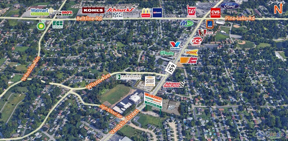 Site de développement commercial de 1,29 acre faisant face à l'IL-159 (Vandalia) nouvellement amélioré, avec plus de 19 600 voitures qui passent chaque jour. Adjacent à l'église Son-Life, à l'école intermédiaire Dorris et au poste VFW. Plusieurs autres commodités à quelques minutes dans l'une ou l'autre direction. Quartier du parc d'affaires Zoné BP-2.