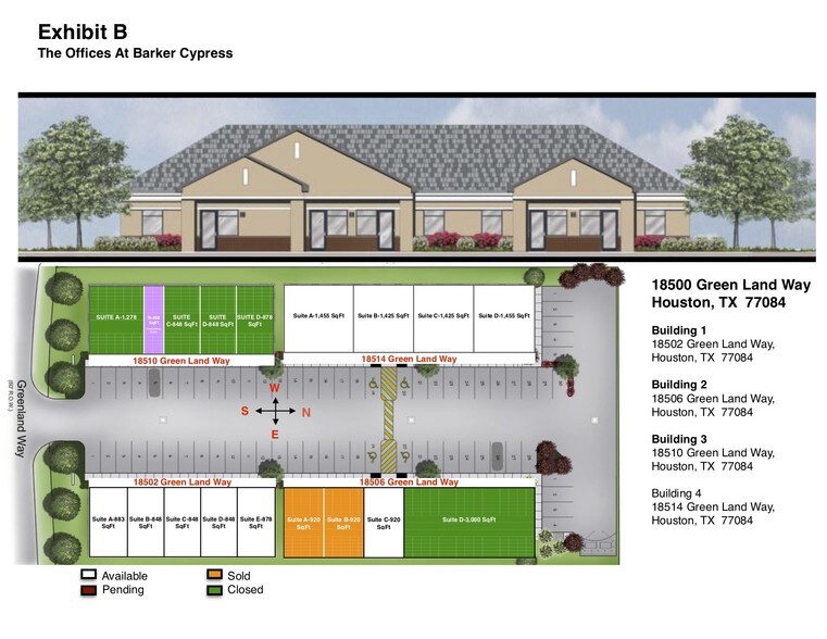The Offices at Barker Cypress 18510 Green Land Way 848 pi² d'espace disponible • Bureau • Houston, TX 77084