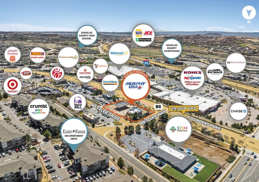 Brand-new 20-year corporate ground lease Murphy USA featuring 10% rental increases every 5 years throughout the base term and option periods. Subject property is located in Castle Rock – an explosive growth, affluent Denver submarket boasting average household incomes of $198K in a 5-mile radius.