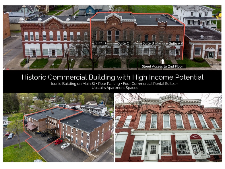 - Les trois autres logements sont des vitrines bien exposées à la rue Main. Le deuxième étage pourrait être converti en boutiques ou appartements louables.