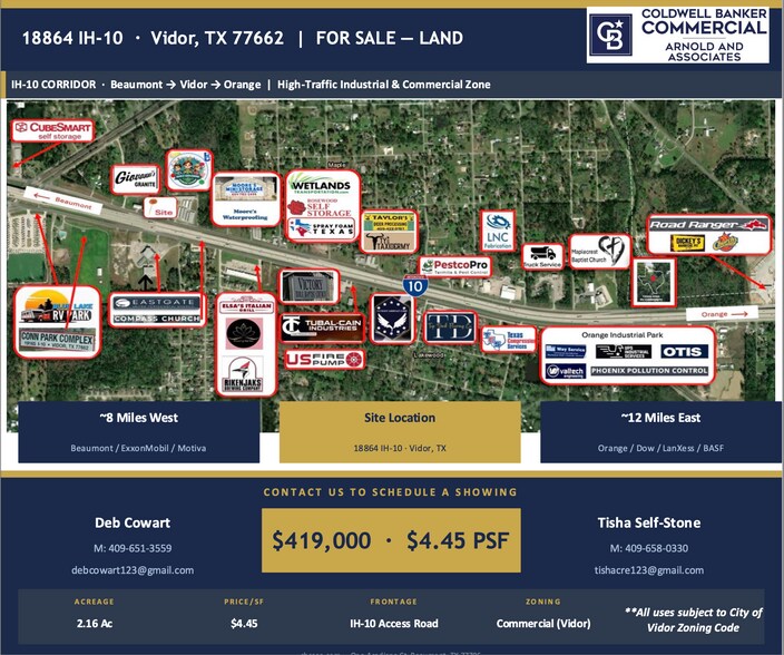 •Zoning: Future use must be used for commercial application (to be confirmed with the City of Vidor)