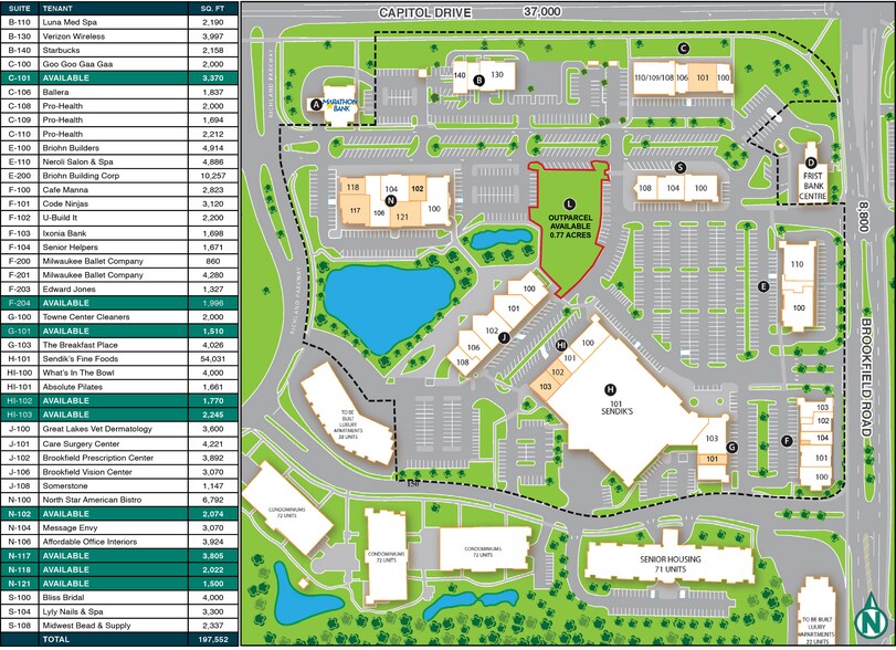 Ce centre commercial hautement identifiable offre une conception architecturale de première classe et une démographie inégalée. Le centre offre un accès régional à partir de Capitol Drive. Il se trouve sur la promenade Capitol et le chemin Brookfield de CFC. L'ensemble du centre offre 963 places de stationnement en surface et 93 espaces souterrains - un total de 5,6 places par 1 000 pc de GLA. Ce centre commercial hautement identifiable offre une conception architecturale de première classe et une démographie inégalée. Le centre offre un accès régional à partir de Capitol Drive. Pour visionner une brochure vidéo du Centre Towne de Sendik, cliquez sur le lien suivant : https://vimeo.com/133791041 Situé à CFC de Capitol Drive et Brookfield Road. Ce centre commercial hautement identifiable offre une conception architecturale de première classe et une démographie inégalée. Le centre offre un accès régional à partir de Capitol Drive. Il se trouve sur la promenade Capitol et le chemin Brookfield de CFC. Le centre offre 963 places de stationnement en surface et 93 espaces souterrains - un total de 5,6 places par 1 000 pc de GLA.
