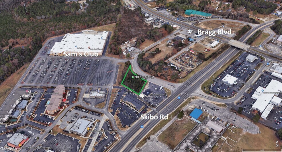 La propriété est située près de l'intersection du chemin Skibo et de la rue Swain et d'une parcelle externe menant à un Sam's Club, à de nombreuses chaînes de restaurants nationales et à deux hôtels. Le chemin Skibo est le principal corridor de vente au détail de la MSA de Fayetteville, avec une très grande zone commerciale et un grand nombre de trafic (35 500 par jour sur le chemin Skibo). Dans un rayon de trois milles autour de la propriété, la population diurne est de 61 440 personnes et le revenu moyen des ménages est de 78 165$.
