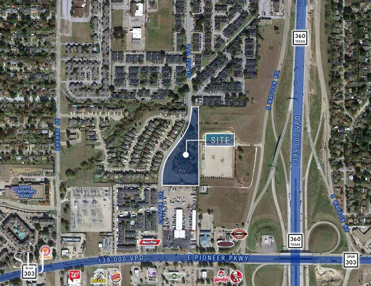 EXCELLENTE EMPLACEMENT : La propriété est située le long de la promenade Carter, entre Pioneer Pkwy et E Park Row Dr. La propriété est visible à partir du SH 360, qui voit plus de 189 000 véhicules par jour. La propriété offre également un accès facile à l'Interstate 20, à l'Interstate 30 et au SH 161, ainsi qu'à de nombreuses autres artères de la région. SITE DE DÉVELOPPEMENT PREMIER : La propriété offre de nombreux avantages en tant que site de développement commercial, y compris une grande superficie de ±4,95 acres, un zonage libéral, un excellent accès, la façade de l'autoroute et la proximité des conducteurs de la zone. Le district libéral de zonage commercial communautaire permet une variété d'utilisations, y compris des services de détail, de restaurant, de bureau, médicaux, personnels et commerciaux. DÉMOGRAPHIE FORTE : La population dans un rayon de 10 milles de la propriété est de plus de 970 000 habitants et devrait croître de près de 3 % d'ici 2025. NOMBRE CONDUCTEURS DE LA CIRCULATION : La propriété est située à moins de 3 milles du district de divertissement d'Arlington, qui abrite le stade AT&T, Globe Life Field, Texas Live ! , Six drapeaux au-dessus du Texas et Six Flags Hurricane Harbor.