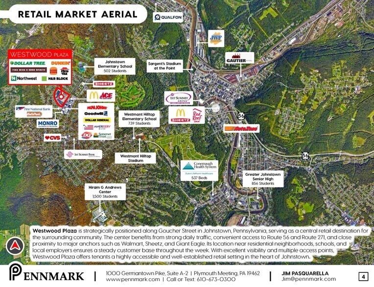 This prominent retail shopping center offers exceptional visibility, easy access, and a diverse mix of co-tenants in a high-traffic corridor of Johnstown, PA. The property features flexible suite sizes suitable for a range of retail, service, and dining users. With ample parking, strong daily traffic counts, and proximity to established national retailers, it presents an outstanding opportunity for businesses seeking a prime, well-positioned location in the market.