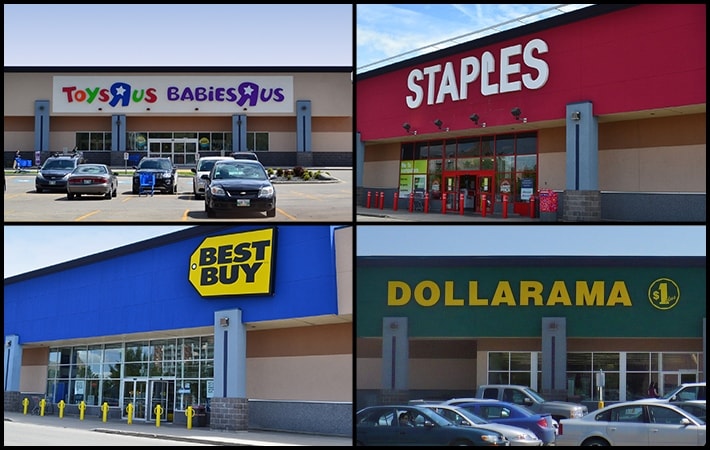 | Dollarama | Magasin à un dollar / Variété / Friperie | 2 298 | National |