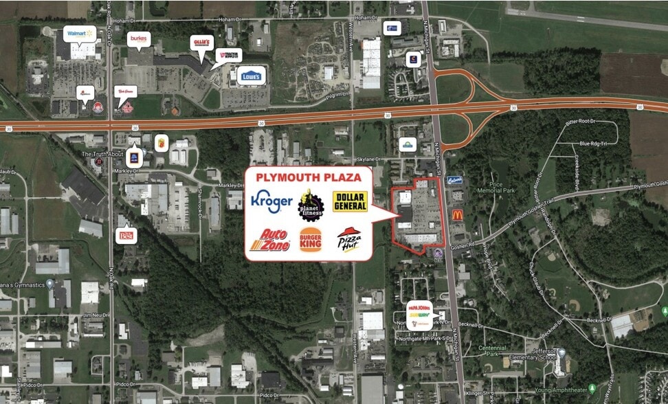 Plymouth Plaza est un centre de vente au détail Kroger et Ace Hardware ancré desservant la communauté de Plymouth, dans l'IN. 5 800 pieds carrés disponibles Kroger Anchored Community Center avec cotenance familiale En face de la rue du parc Centennial, où se trouvent des terrains de baseball publics, des piscines, Courts de tennis et événements communautaires À moins de 2 milles de chaque école de la maternelle à la 12e année du réseau scolaire de Plymouth (environ 3 500) Étudiants)
