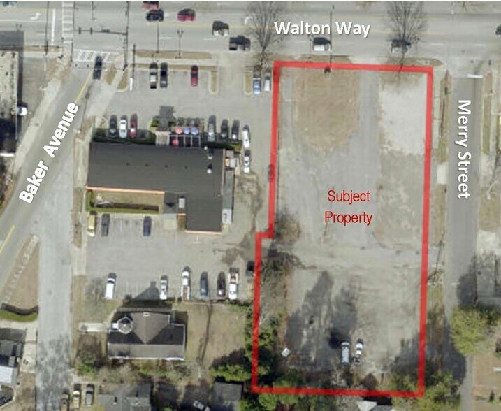 Le 1916 Walton Way est un terrain de 0,93 acre situé à l'angle de Walton Way et de la rue Merry. Cette propriété est zonée B-1 avec 136 pieds de façade sur Walton Way et 280 pieds de façade sur la rue Merry. Prêt pour le site et tous les services publics disponibles.