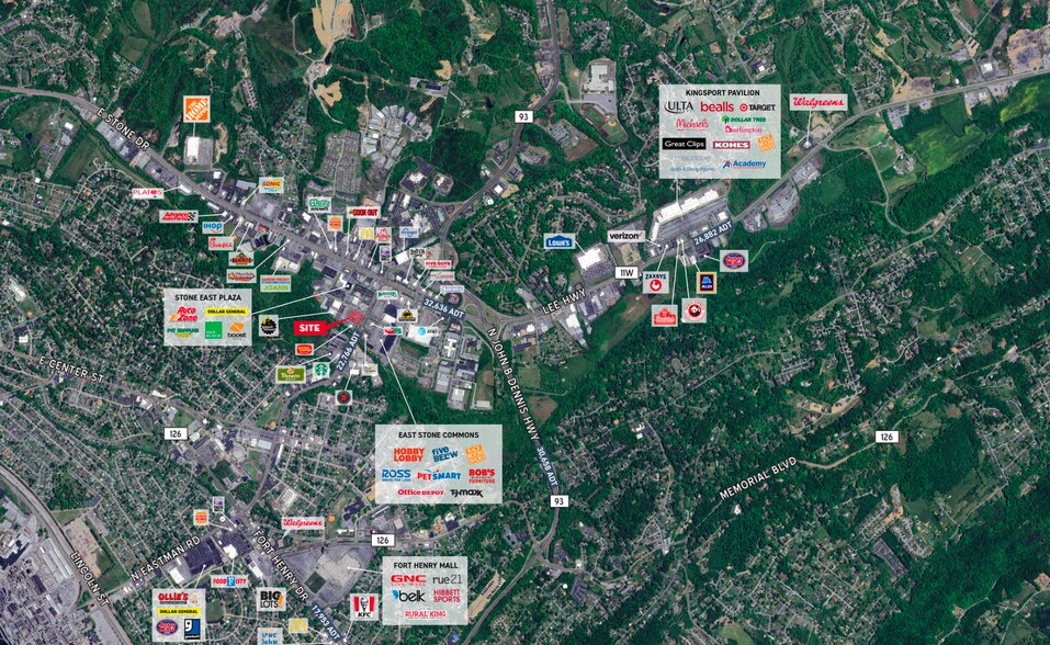 O'Charley's Restaurant & Bar 1920 N Eastman Rd 7 100 pi² d'espace disponible • Commerce de détail • Kingsport, TN 37664