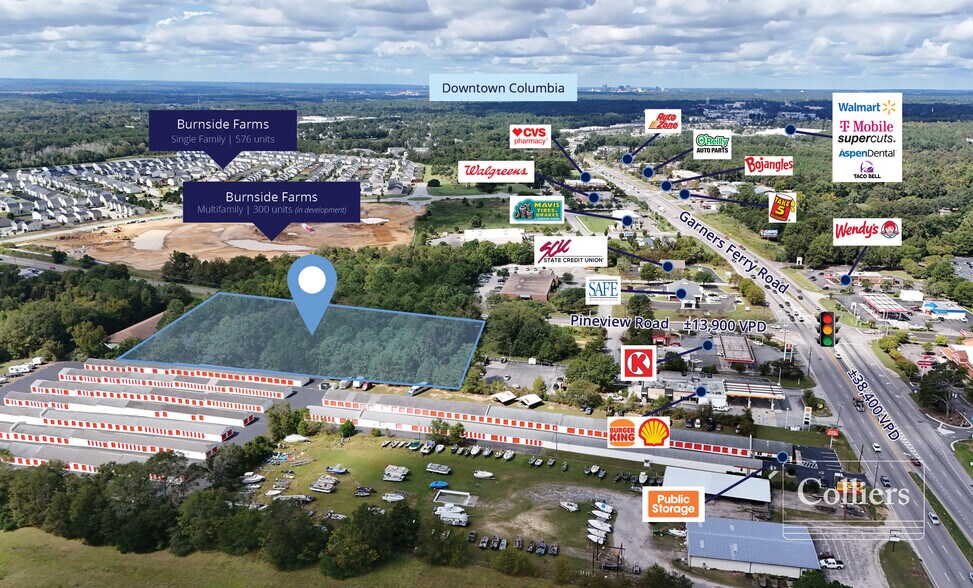 Cette parcelle de ±3,81 acres est située près de l'intersection du chemin Garners Ferry et du chemin Pineview. La propriété a une façade de ±460 pieds le long du chemin Pineview et est zonée à des fins commerciales générales. Les égouts et l'eau sont situés sur le site par le fournisseur de la Ville de Columbia. La propriété est située dans une zone où le trafic est élevé sur le chemin Pineview (±13 200 véhicules par jour) et le chemin Garners Ferry (±35 500 véhicules par jour). Le site offre l'avantage des usagers du commerce de détail avoisinants sur la route Garners Ferry, notamment Exxon, Shell Station, Burger King, Hardee's, Wendy's, Walgreens, CVS, Zaxby's, Auto Zone, Advance Auto Parts et bien d'autres. Les utilisateurs industriels à proximité comprennent Sysco, America Spiral Weld, Avantech, Jushi, FedEx, Mark Anthony Brewing, Excel Truck Group et plus encore. Pour de plus amples renseignements, téléchargez le dépliant et communiquez avec le courtier Ryan McCue.