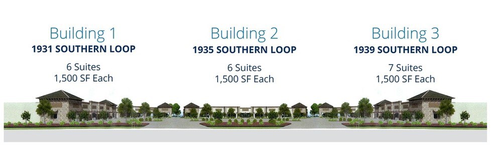 Building Three is 1939 Southern Loop and consists of 7 Suites at 1,500 SF each; being 25' wide and 60' deep. - Two Available.