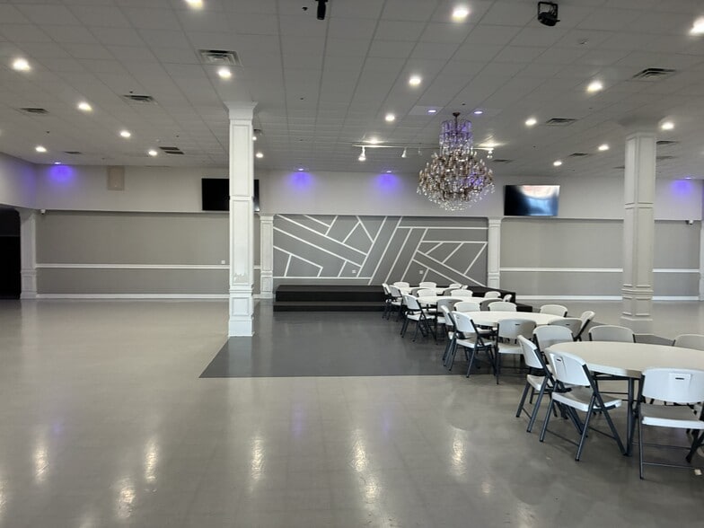 • Grand banquet hall — up to 500 guests• Commercial kitchen — full production capability• Dedicated bridal suite & groom suite• Bar area — separate, dedicated service• Conference room — up to 125 combined capacity• Perimeter meeting & storage rooms• 172 paved off-street parking spaces• Excess land & paved areas for expansion