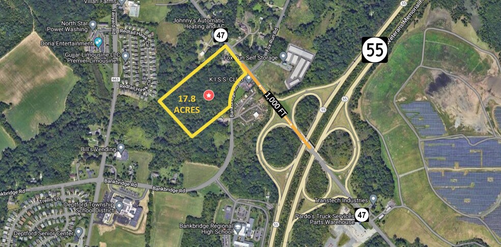 - Proximity!! 1,000 feet from Exit #56 on Route 55 and approximately 2.7 Miles to Route 42