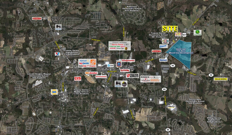 - Gold Leaf modifiera la dynamique des zones commerciales de Fuquay-Varina, plaçant ce site au centre de l'attention