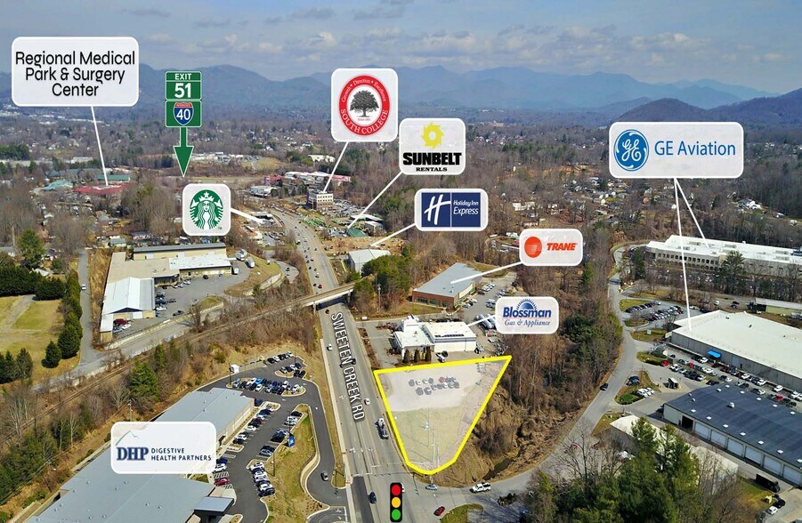 Sweeten Creek Road serves as a key connector between South Asheville, Arden, and Downtown Asheville, supporting daily traffic volumes of approximately 27,500± vehicles per day (AADT) in the immediate corridor.