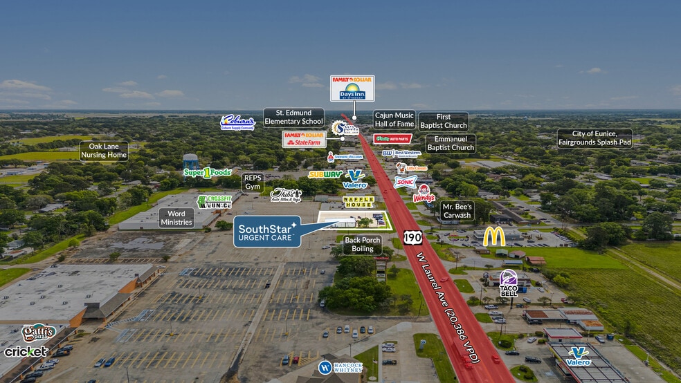 - Rare opportunity to acquire a purpose-built SouthStar Urgent Care facility in Eunice, LA, featuring 20-years of renewal options.