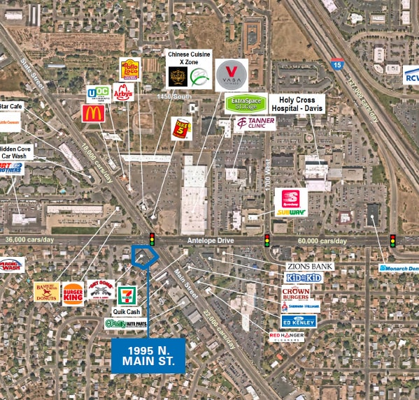 - Freestanding hard corner retail in the heart of Layton on Main Street and Antelope Drive