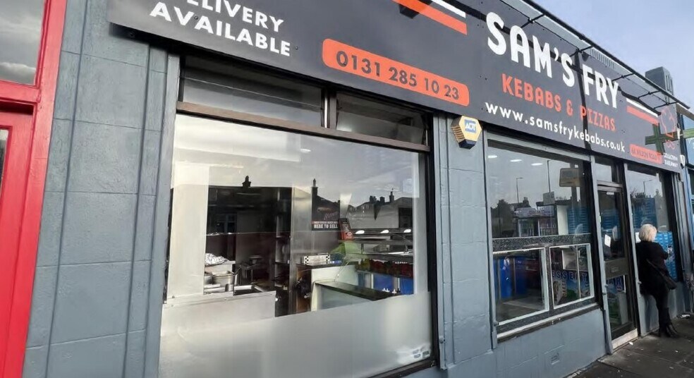 L'entreprise occupe le rez-de-chaussée et le sous-sol d'un défilé d'un étage de commerces de détail gratuits. Un parking gratuit est disponible directement à l'extérieur et sur le les rues avoisinantes. Sam's Fry occupe un lieu de traite très visible sur le chemin Milton Ouest, près de sa jonction avec Duddingston Park et Duddingston Park South, dans la banlieue est d'Édimbourg. Milton Road West fait partie de l'itinéraire principal A1 qui commence dans le centre-ville d'Édimbourg et se termine à 440 milles au sud à Londres. Cette partie d'Édimbourg offre une vaste et variée sélection de logements dans les banlieues environnantes de Duddingston, Bingham, Niddrie, Portobello et Craigmillar.
