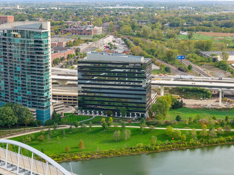 Hall récemment rénové ! Le hall d'entrée a été rénové en ajoutant une aire commune pour les invités ou les locataires à utiliser avec des bornes de recharge, une connexion Wi-Fi gratuite, deux téléviseurs et une abondance de sièges. Il y a une esplanade piétonnière magnifiquement paysagée qui mène à des pistes cyclables et des parcs et sera le point d'entrée des magasins de détail et des restaurants. Le bâtiment offre des systèmes de CVC à commande numérique directe avec des boîtiers à vav et des fibres optiques souterraines complètes pour assurer des communications fiables. Une entrée de service séparée dotée d'un silo et de quais de chargement pour accueillir les camions élimine les interférences avec les locataires. De plus, le personnel de gestion sur place est réceptif et comprend une équipe de sécurité et des services aux locataires avec des représentants pour répondre rapidement et efficacement aux demandes des locataires. Certaines des caractéristiques particulières du bâtiment comprennent une vue incroyable sur le centre-ville, le verre du sol au plafond et de vastes finitions du hall d'entrée, y compris le granit poli et le marbre fin. L'édifice compte 12 étages et offre 3/1 000 places de stationnement. Des services de navette gratuits pour le centre-ville sont disponibles pour les locataires. Entouré de One Miranova au sud, de COSI à l'est et du district Arena au nord, la zone riveraine devient rapidement la principale adresse d'entreprise. L'édifice a un accès facile au centre-ville de Columbus, au Capitole Square et est visible depuis les principales autoroutes.