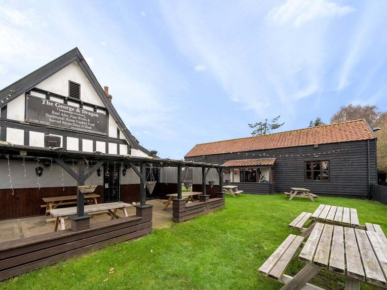 The George & Dragon occupies a prime position in the picturesque village of Thurton, situated just off the A146, the main route linking Norwich and Lowestoft. This strategic location ensures excellent accessibility for both local residents and passing trade, while being only a short drive from the Norfolk Broads, a popular destination for tourists. The surrounding area is a mix of charming villages and countryside, attracting walkers, cyclists, and visitors seeking traditional hospitality. With Norwich approximately 8 miles away, the pub benefits from proximity to a vibrant city while retaining its rural appeal.