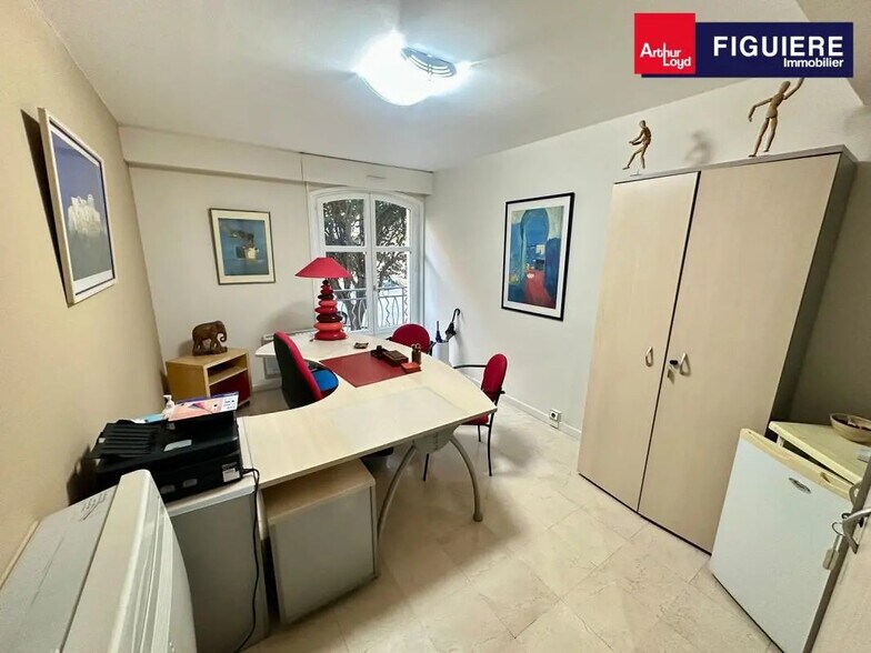 ARTHUR LOYD FIGUIERE IMMOBILIER vous propose des bureaux de standings à louer au centre-ville d'Aix-en-Provence, parfaits pour votre entreprise. Immeuble situé à deux pas du cours mirabeau et des parkings publics d'Aix en Provence. Les locaux sont loués meublés. Une place de parking privative au sous-sol est disponible à la location en supplément. Ne manquez pas cette opportunité exceptionnelle ! Carrelage au sol Climatisation réversible dans la salle de réunion Climatisation produisant que du froid dans les bureaux Accueil 2 bureaux Salle de réunion Sanitaires privatifs Bureaux loués avec les meubles Surface RDC : 67 m²