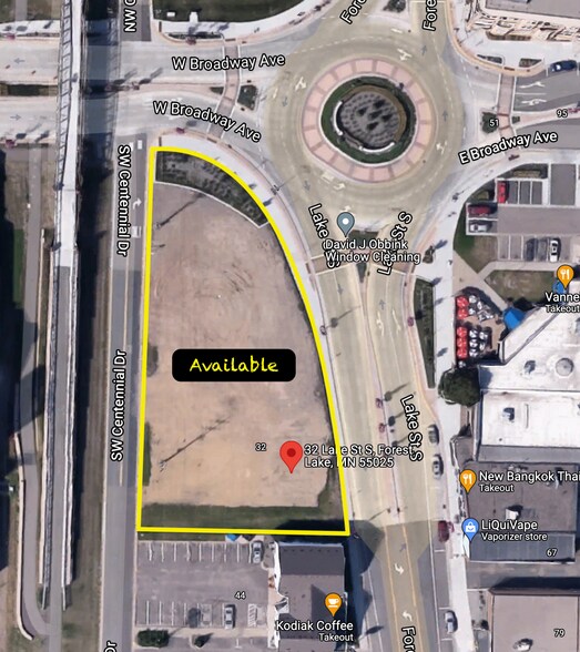 Deux parcelles situées directement à côté du rond-point du centre-ville de Forest Lake. Ensemble, les parcelles correspondent à environ 0,85 acre (~36 850 pieds carrés). ? Numéro d'identification des parcelles : 20, rue Lake : 0803221130143 32, rue Lake : 0803221130144