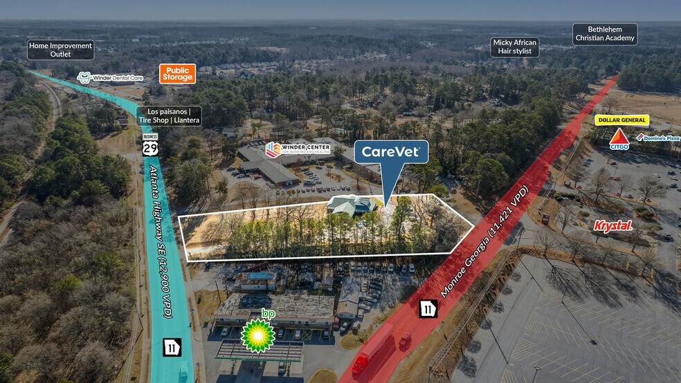 Sands Investment Group is pleased to exclusively offer for sale the 3,700 SF CareVet located at 20 Monroe Highway in Winder, Georgia. CareVet is a rapidly expanding veterinary platform with more than 200 locations across 35 states, backed by institutional capital and strategic investment partners that support continued growth. The company has also implemented advanced technology partnerships to modernize operations, payment processing, and compliance, reinforcing the scalability and durability of its platform and positioning the tenant for long-term success.