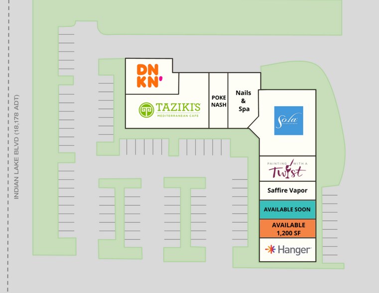 | Type de centre | Centre commercial à ciel ouvert | Superficie commerciale brute | 20 038 pi² |