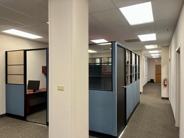 Grande suite de bureaux située au premier étage directement à côté du hall de l'entrée principale de l'immeuble. Une combinaison de 3 à 4 bureaux individuels et de cinq postes de cabine. Deux salles de conférence, une cuisine et une salle de bain privée.