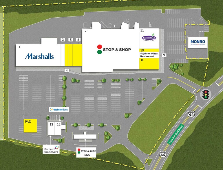 Space available at Winsted's premier shopping destination. Join Stop & Shop, Hartford Healthcare, and Marshalls. T Strategically located on Route 44 and 1/2 mile east of Route 8, with excellent visibility hosting a pass-through of over 16,000 vpd
