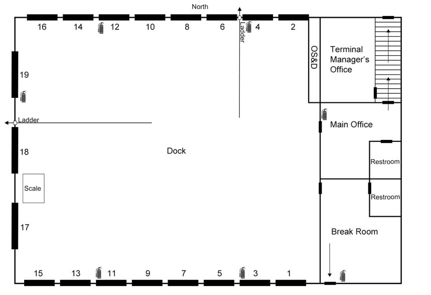 6,120 SF cross dock facility on 3.32 acres. (16) 8’x10' docks and (3) 8’x8' docks. 14' clear span warehouse with 400 SF office. Rocked parking lot.