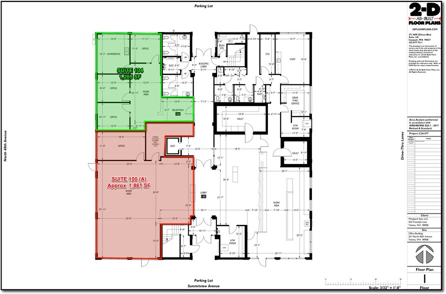 THIS OFFERING is for the opportunity to lease a recently updated professional office building on one of the most prominent corners in Yakima. Built out originally for a bank, these ground floor offerings feature parking lots to the north and south along with multiple egress/ingress access points. With 50,000+ vehicles per day this site has a huge capture rate of both ‘going to work’ and ‘going home’ vehicles. With convenient access to various shops and services, the location seamlessly blends convenience with elegance, making it an ideal setting for a thriving office space.