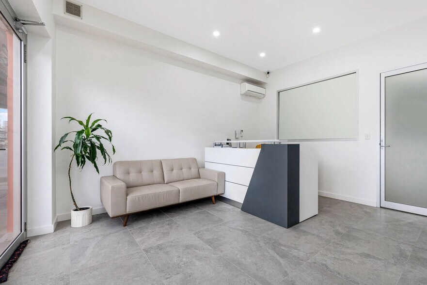 This fully renovated space spreads across two levels including office partitioning, a large reception area, kitchen and two toilets on the ground floor and 2 rooms with a bathroom upstairs.