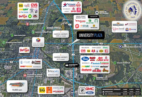 • Anderson, IN is located in the Indianapolis MSA, and is home to $2.1M+ people