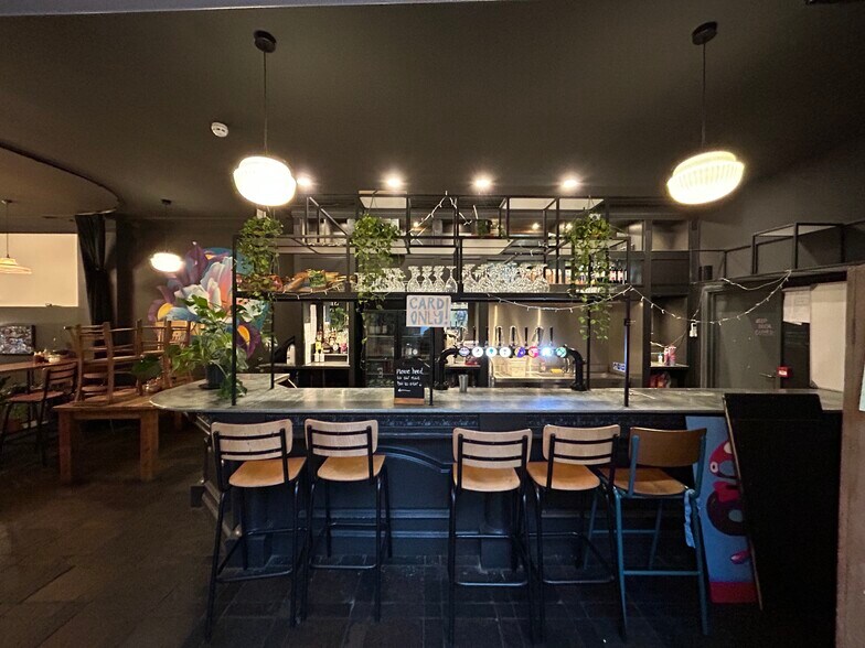 The property has a large open plan sales space with a front serving counter and coffee station. There is further seating up the staircase to the rear with the main bar situated at the rear of the property. The property benefits from a commercial kitchen fitted with walk in fridge, commercial extraction and various equipment as listed in the inventory. Further there is a rear beer cellar and tap room, disabled W.C and baby change and three single W.C’s. There is a rear courtyard which we understand falls under separate ownership and rear external bin stores. Fully refurbished just over a year ago, the property has been fitted to an exceptional standard with painted plastered walls and ceilings, a mix of wooden laminate flooring, tiled and vinyl flooring. The lighting comprises a mix of LED strip lighting, pendants, recessed spotlights and wall lights. The property further benefits from a large roof lantern to the rear. Services include water, electricity and air conditioning. There is no gas in the property, and CCTV has been installed.