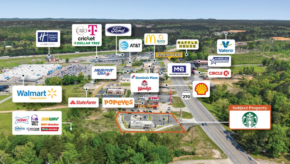 This corporate Starbucks lease features 7.50% rent increases every five years throughout the base term, as well as at the commencement of each of the four (5-year) option periods. The property is strategically positioned just off I-30 which has traffic counts exceeding 55,000 vehicles per day, in close proximity to a Walmart Supercenter, McDonald’s, and other national retailers.