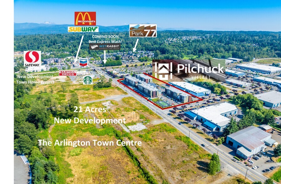 Arlington's Pilchuck Village Retail/Office Suites are located in a highly sought after location with high traffic volumes and minutes from Hwy 9 and I-5. Term is negotiable! Vanilla Shell delivery with Two (2) Type 1 hood capability for your restaurant storefront with 204th Ave Ne right in front of the building. Across the street is Starbucks, Bartell Drugstore and by Hwy 9 is Safeway and so much more. The Centennial (Walking & Bike) trail is right down the street. Welcome to Arlington and your new location!