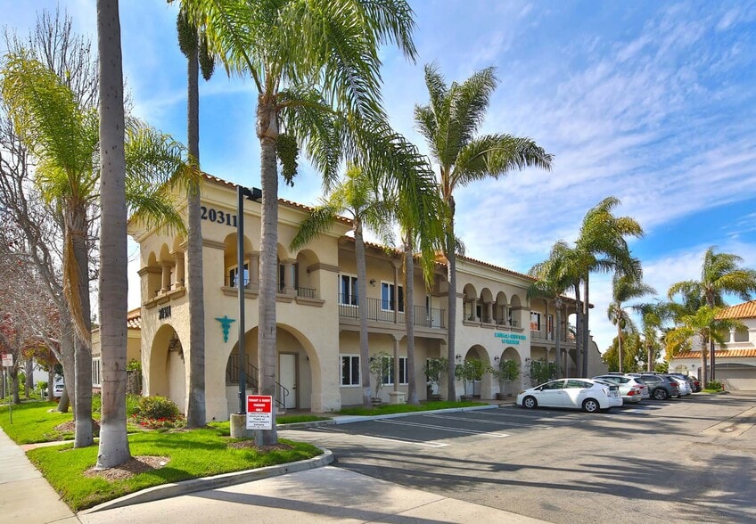 Édifice de deux étages avec l'identité de la façade de la rue Acacia, stationnement de surface gratuit.