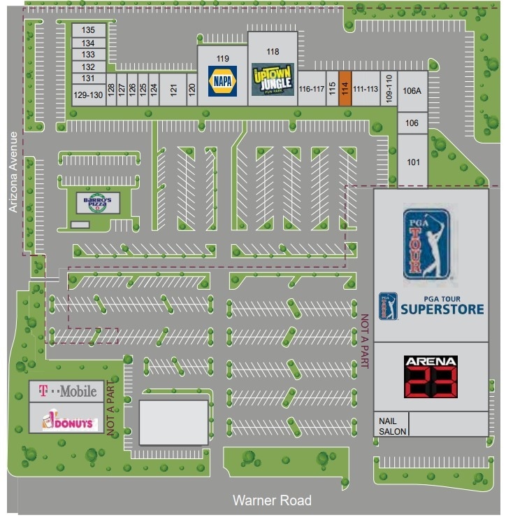 La propriété est un centre commercial multi-locataires à l'angle nord-est de l'avenue Arizona et Warner Rd. à Chandler, en Arizona. La propriété a une façade sur l'avenue Arizona et le chemin Warner. La superficie de ±83 277 pieds carrés est située sur un terrain de ±10,52 acres.
