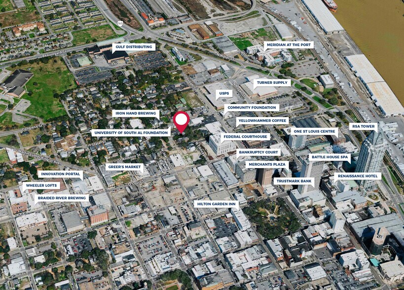 The property includes a parking lot accessed from St. Anthony Street with 22 parking places which is rarely available in downtown. The building includes 9 private offices, area for support staff or additional open space offices, 2 restrooms, a conference room and coffee bar. The property also includes an EV charging station, outdoor courtyard area and spacious front porch. This is a rare opportunity to own a beautifully maintained building in the heart of Downtown Mobile!