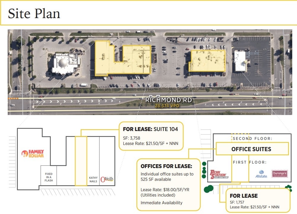 White Oak Commercial Real Estate est heureux d'offrir les bureaux du centre commercial Idle Hour à louer. Le centre commercial Idle Hour est un immeuble de bureaux et de vente au détail à usage mixte comprenant 10 937 pi2 de suites de bureau de direction. Les locataires au détail comprennent Penn Station, Family Dollar, Windstream, Durango's, Allstate, O'Neill's et plus encore. Situé à moins d'un mille de l'intersection Richmond Road/New Circle, cette propriété offre une excellente visibilité et un accès. Le centre commercial Idle Hour fait face à la route Richmond et est idéalement situé entre New Circle Road et Downtown Lexington. La propriété offre un trafic de 28 374 VPD et voisine le réaménagement du centre commercial Lexington et du quartier populaire Chevy Chase avec les données démographiques les plus élevées à Lexington. Le réaménagement du centre commercial Lexington est ancré par l'église chrétienne Southland avec Chick Fil A, McDonald's, Orange Theory Fitness, Home Depot, Newk's et Panda Express sur les parcelles.
