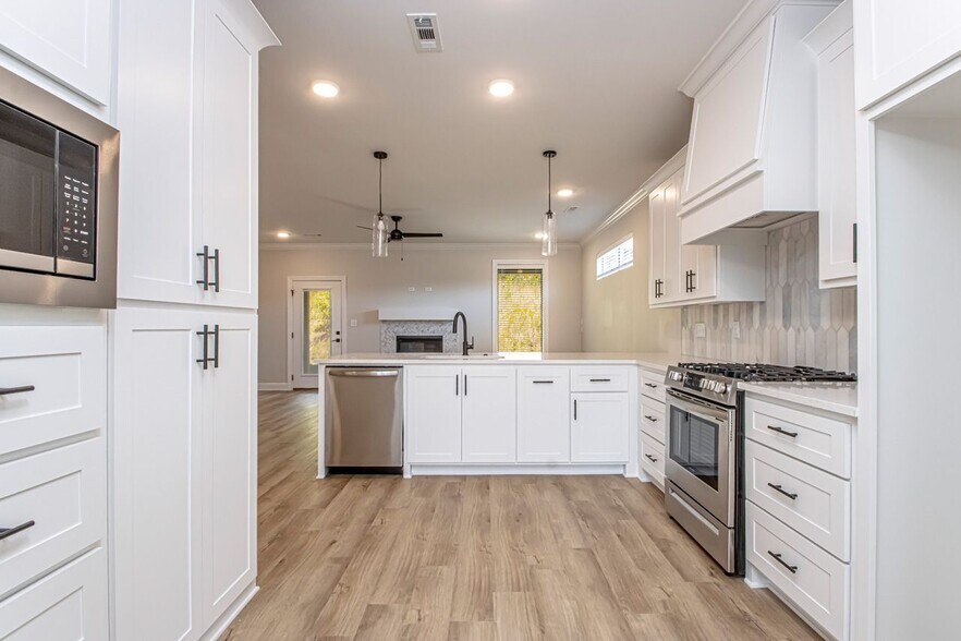 Completed with contemporary design and functional layouts, the homes range from 1,900 to 2,400 square feet of heated and cooled living space. Each residence features an open-concept floor plan ideal for today’s lifestyle needs, complemented by elegant interior finishes including luxury plank flooring, custom cabinetry, solid-surface countertops, and stainless-steel appliances highlighted by a gas slide-in range. High-efficiency construction—featuring cellulose-insulated exterior walls and R-38 attic insulation—delivers durable performance and reduced operating costs.