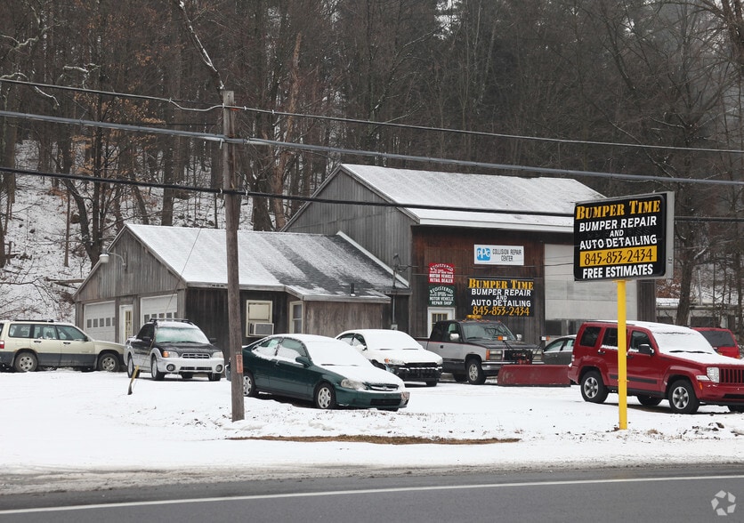 This auto body shop for sale is located on the highly visible Route 9W corridor in Lake Katrine, offering approximately 200 feet of frontage along a prime retail and commercial stretch anchored by major national retailers including Home Depot, Adams, and Lowe’s. The property features three service bays, including one oversized bay with an overhead door and a car lift, along with two additional bays positioned on the side of the building for efficient workflow and access. An on-site office area supports administrative operations, while oil heat, town water, and a private septic system serve the property. The site includes a large parking area suitable for customer and inventory needs and is approved for auto dealership use, providing significant flexibility for continued automotive operations or expansion. An additional neighboring quarter-acre lot is included in the sale, further enhancing site utility and development potential. With strong frontage, ample land, and a high-traffic location, the property also presents an attractive opportunity for redevelopment, including potential conversion to self-storage or other commercial uses.