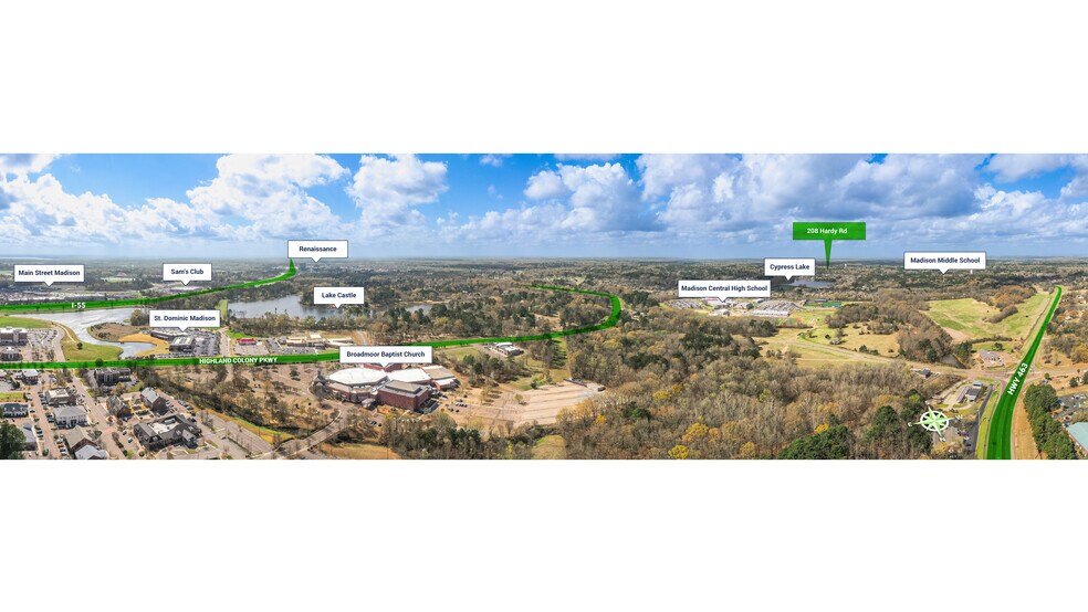 Located just minutes from top-rated schools in the Madison County School District, established office parks, and major retail destinations such as The Renaissance and The Township at Colony Park, the site combines a peaceful setting with exceptional accessibility. The property includes a private drive to a 2,500 SF house built in 1975 overlooking the private lake.