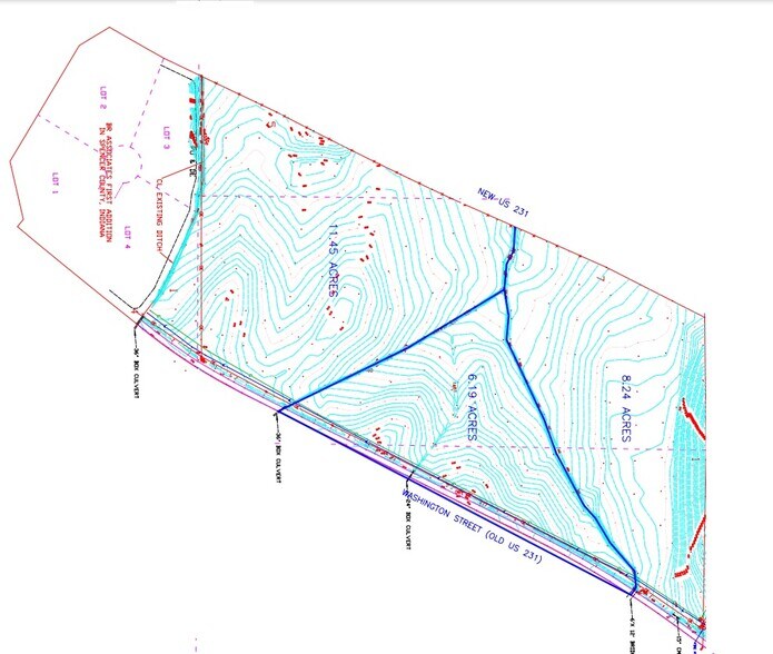 Environ 20 acres de terrain conviennent parfaitement à la fois au commerce de détail et à l'utilisation flexible. Stratégiquement situé juste au sud de l'échangeur I-64 avec une façade sur la route 231 et le nord de l'État de Washington. Situé à proximité de l'usine de production de charbon au diesel proposée par Riverview Energy. Possibilité de subdiviser la propriété en 2 parcelles (11,45 et 8,24 acres).